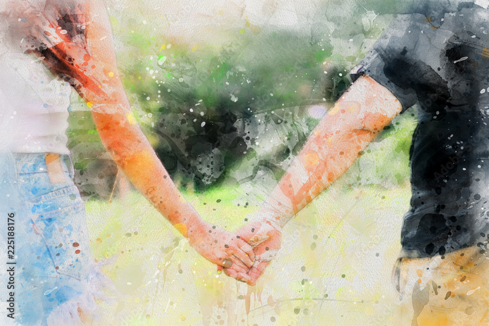 Young Couple Holding Hands Watercolor Painting On White Background Digital Art Style Illustration Painting Stock Illustration Adobe Stock